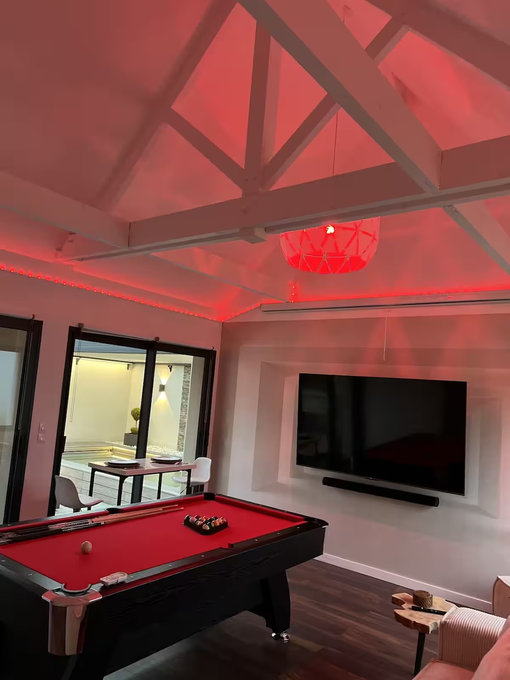 À La Baule, laissez-vous séduire par une escapade d’exception dans la Mini Villa. Profitez d’une piscine semi-couverte au toit entièrement refermable, détendez-vous dans le jacuzzi ou le sauna, savourez des moments cinéma dans le home cinéma, et travaillez ou créez en toute tranquillité dans le bureau privatif. Salle de sport, confort et intimité : tout est pensé pour que votre séjour soit entièrement privatisé et inoubliable.